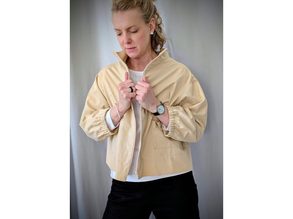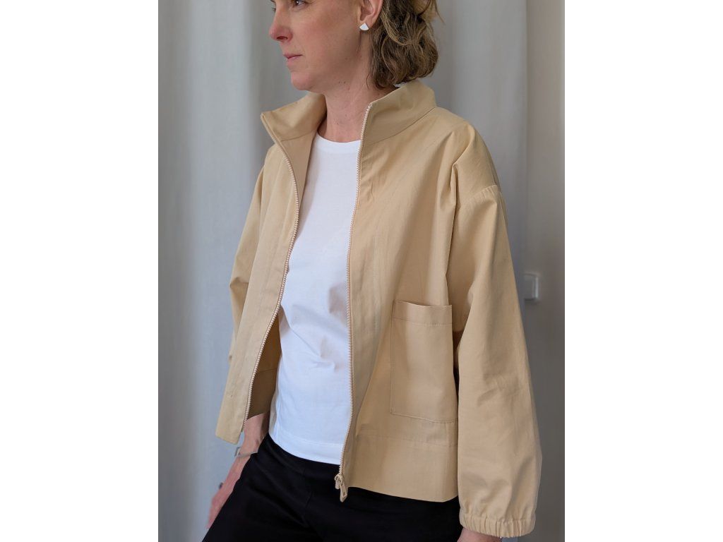 Bavlněná „bomber“ bundička: Minimalismus v béžové