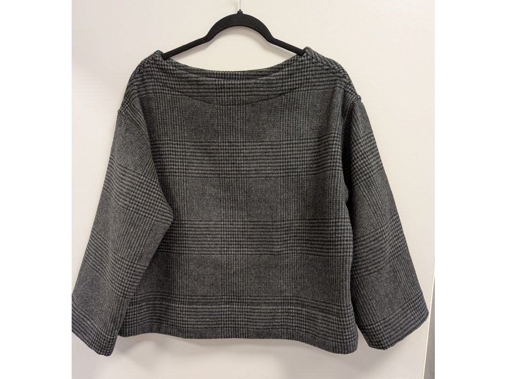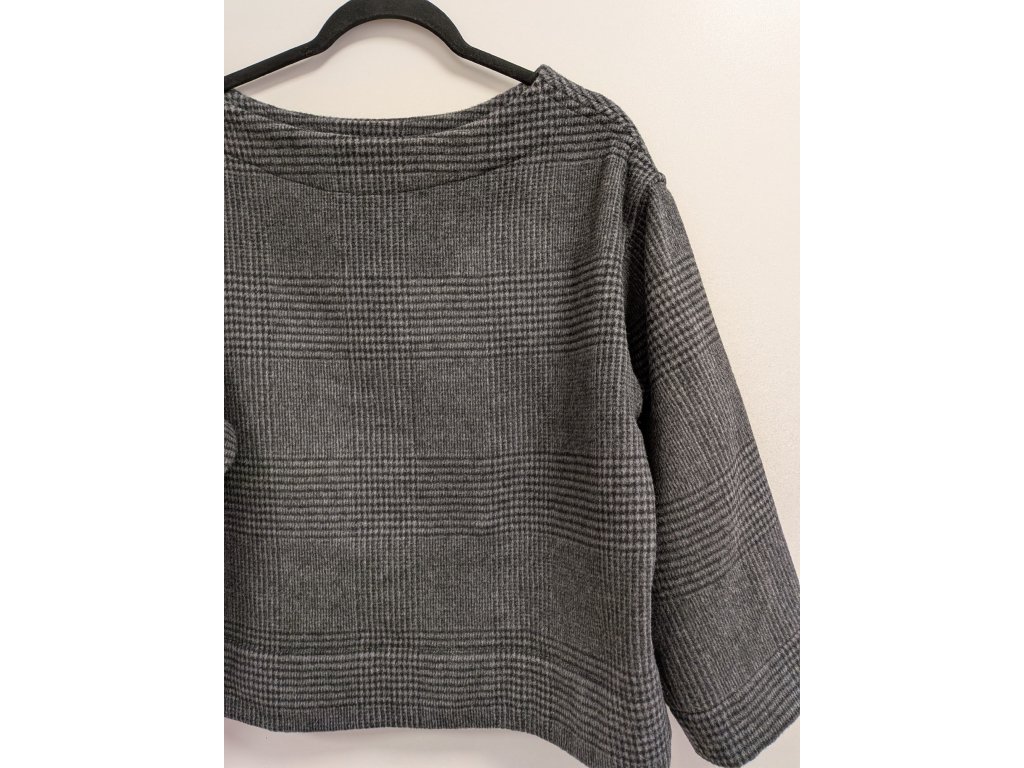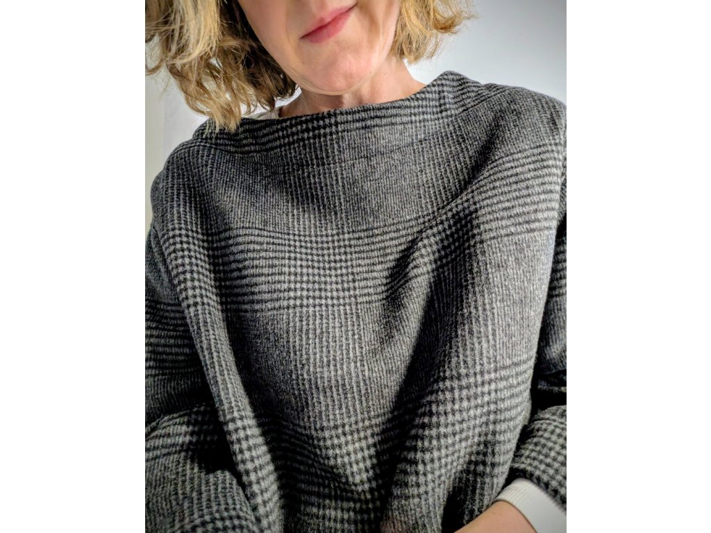 Oversizový vlněný utíkáček přetahovací přes hlavu s nadčasovým jaro vzorem