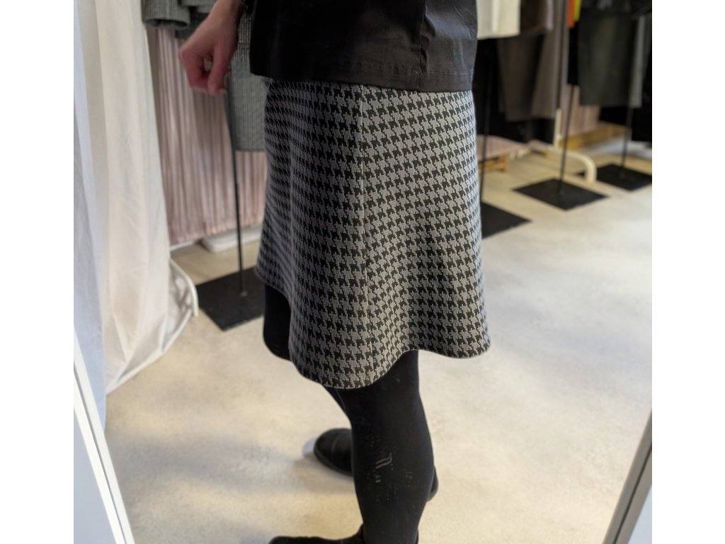 Ůpletová sukně s pepito vzorem v šedé barvě.